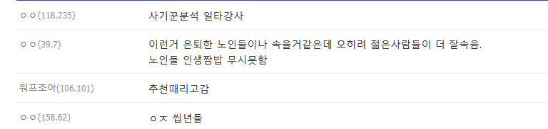 ex)"횐님덜,,, 흙수저 팔이, 노앰이 팔이 지겹고 뻔한 스토리 아닙미까!!! 속지마십셔"