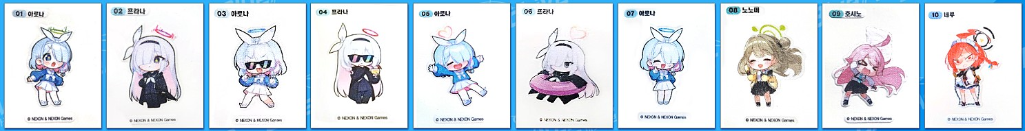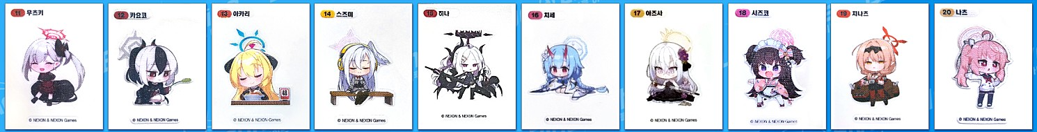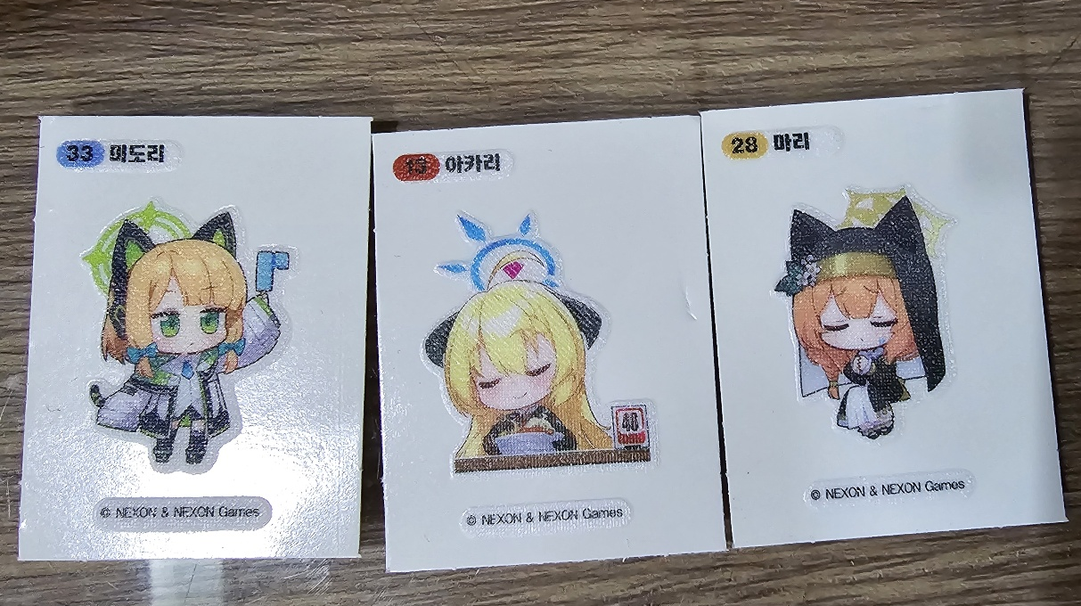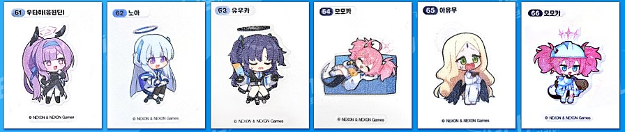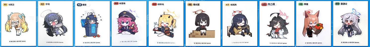 포켓몬스터 빵이야, 출시했을 때는 그래도 포켓몬 도감에 있는 숫자와 동일하게 출시되었기 때문에 뭐가 몇번이다! 라는 느낌이 있었지만. 블루아카이브에는 그 순서가 없었죠. 게임 초기 이후, 어느 정도 신규 캐릭터들이 출시되면서 순서를 유추할 수는 있었지만 이번처럼 순서가 (띠부실로) 정해진 건 또 신기합니다.