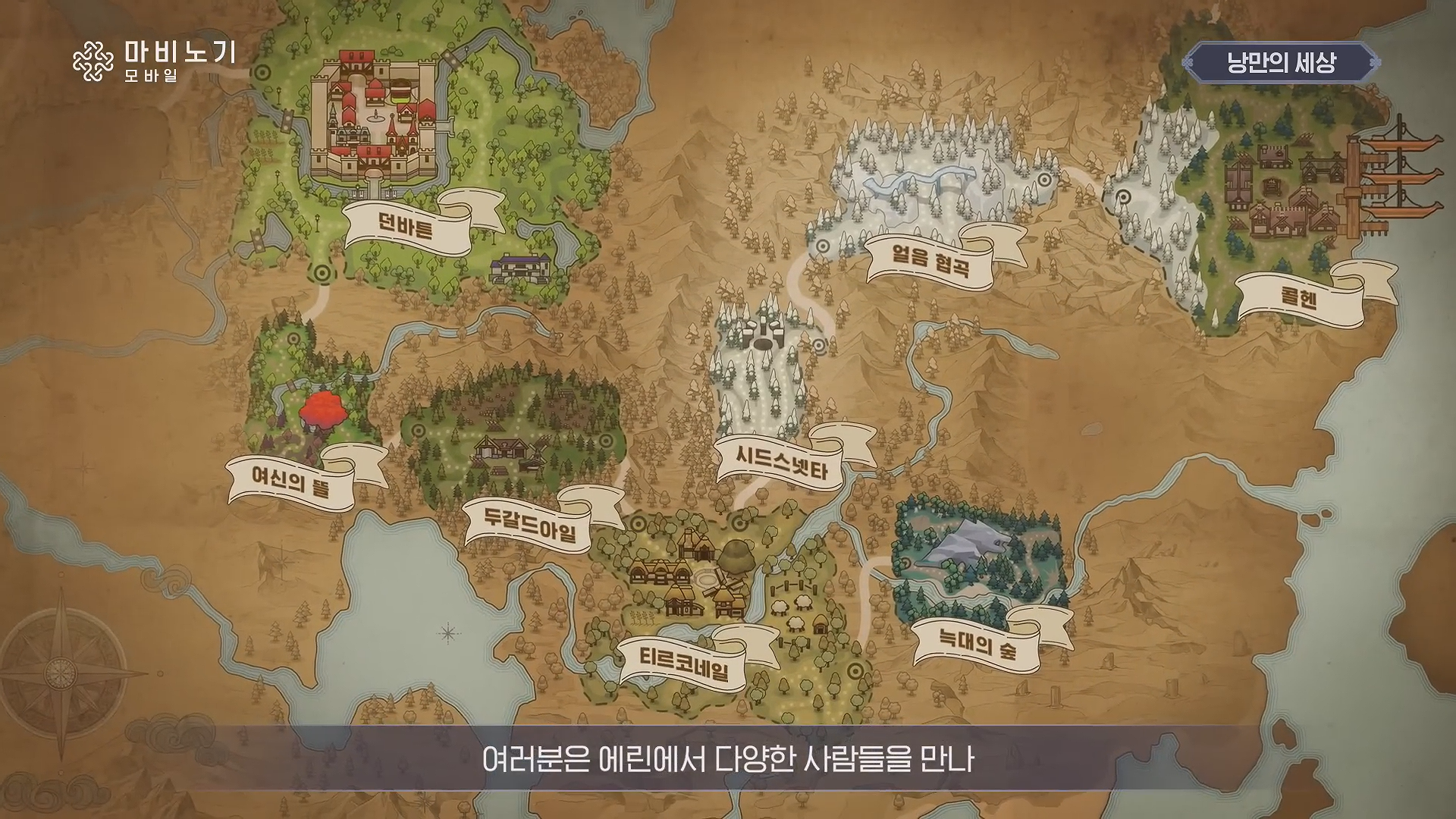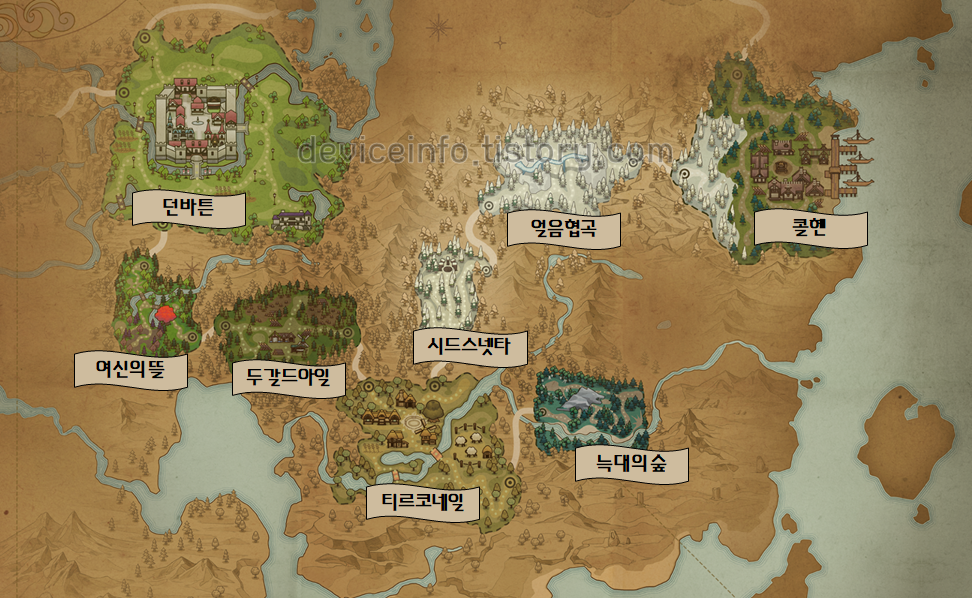 당장에 마비노기 모바일이 오픈하면서 인게임으로 들어가는 지도, 마을은 다음과 같다.