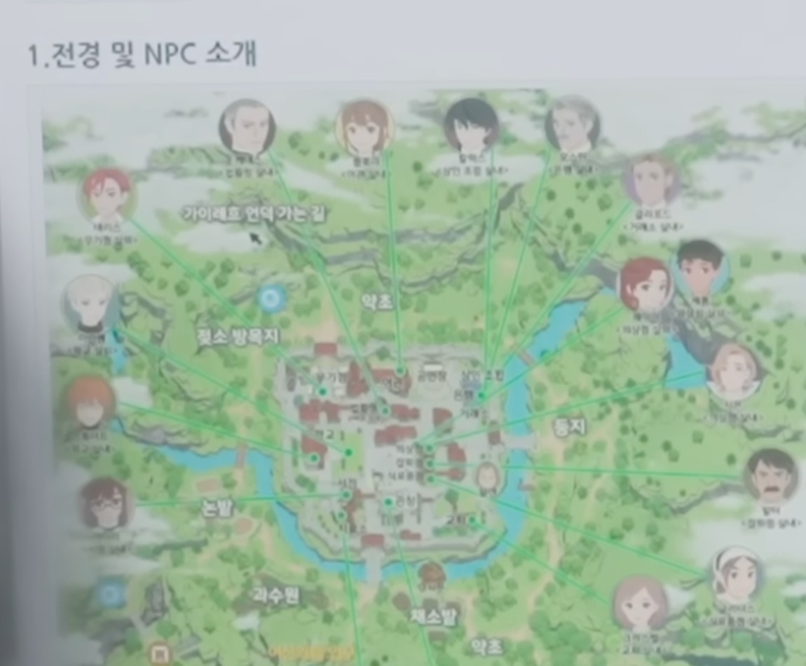 개발진 모니터를 통해 확인 가능한 마비노기 모바일 던바튼 내 NPC의 위치이다. 여기서보면 11시 방향으로 가이레흐 언덕 가는길 이라는 글을 확인 가능한데... 그럼 던바튼 북쪽이 이멘마하가 아니라 반호르 일 수도 있다. 이 부분은 오픈하고 나면 직접 탐험 확인 하여 수정하여 업데이트 하도록 하겠다.
