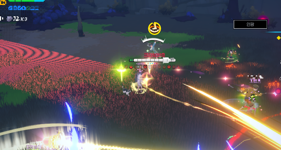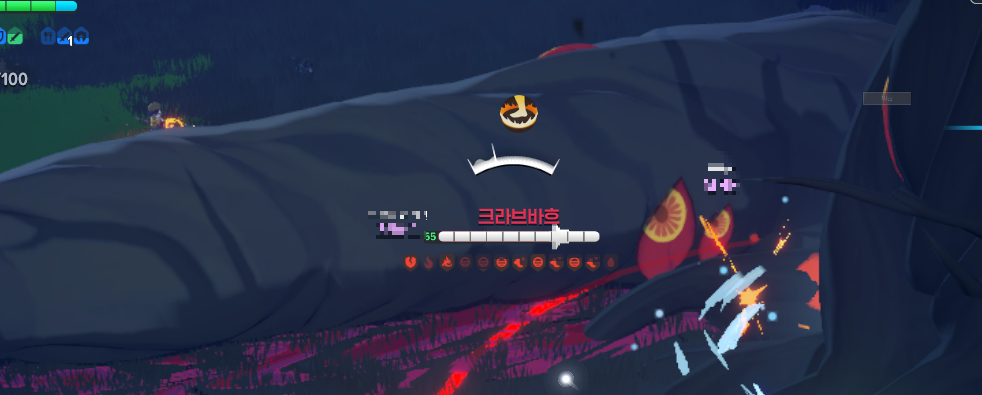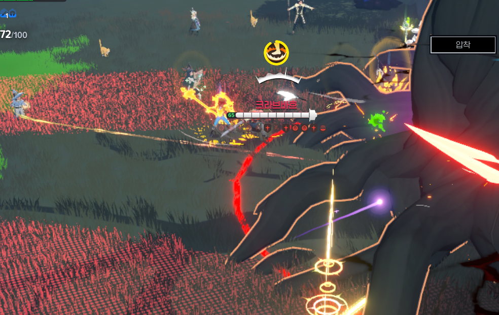 - 필드보스 크라브바흐를 중심으로 전면으로 일직선 레이저 공격