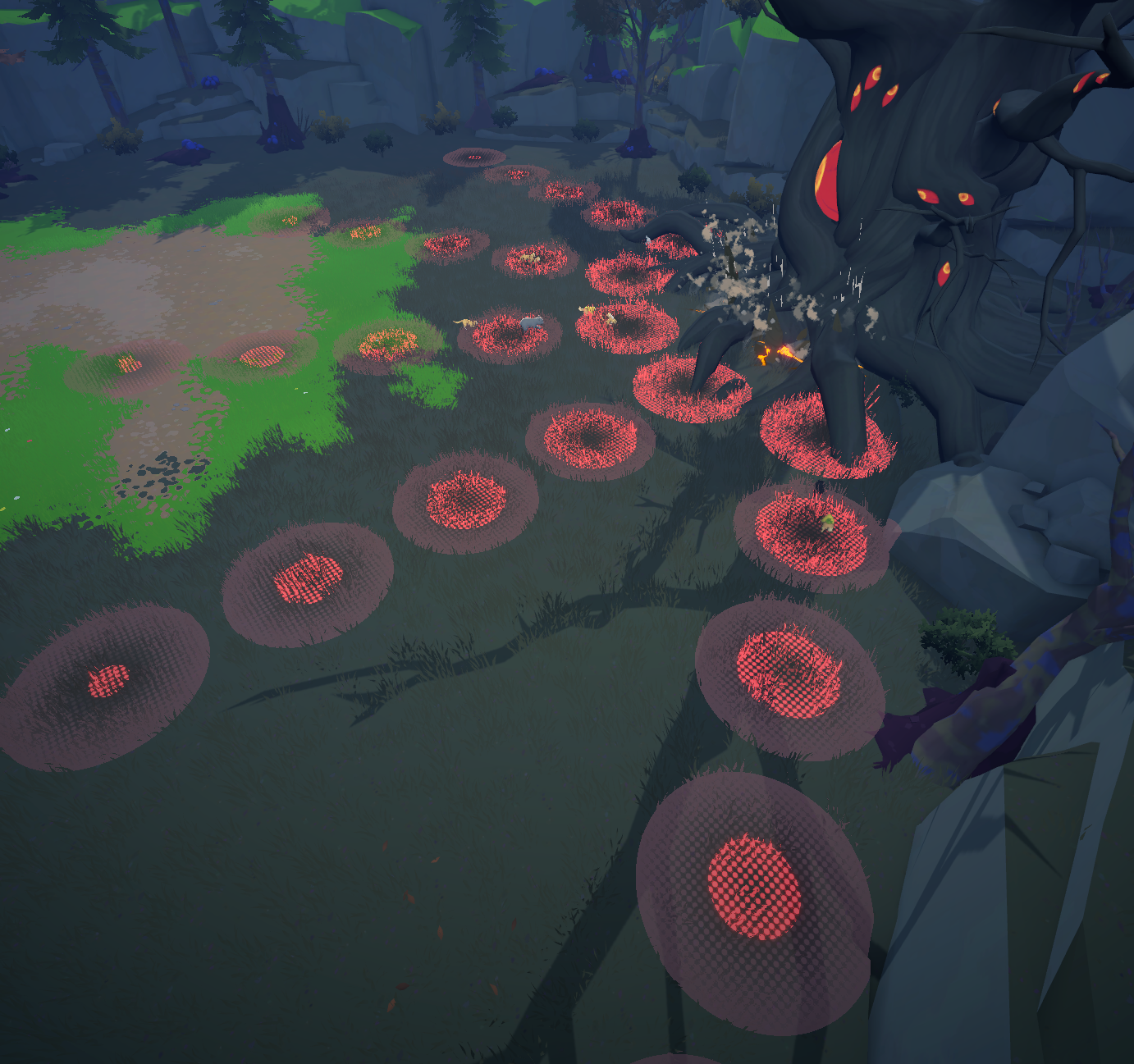 - 각자 개별적으로 공격하는 '살아있는 뿌리'를 소환