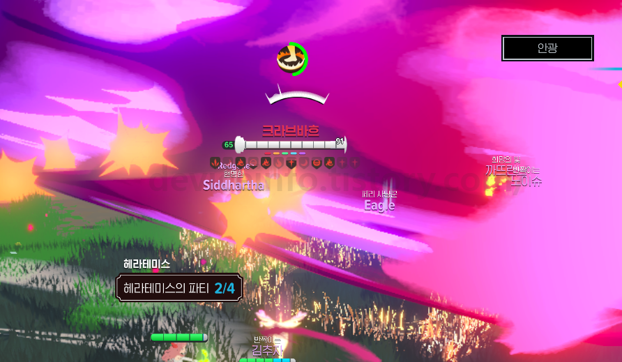 - 대응 방법: 죽이지 않으면 계속해서 공격을 이어가며, 타켓팅을 변경하여 잡아도 되지만 체력에 자신이 있다면 맞으면서 딜을 하자. 결국 플레이어들의 광역 딜에 의해 죽음