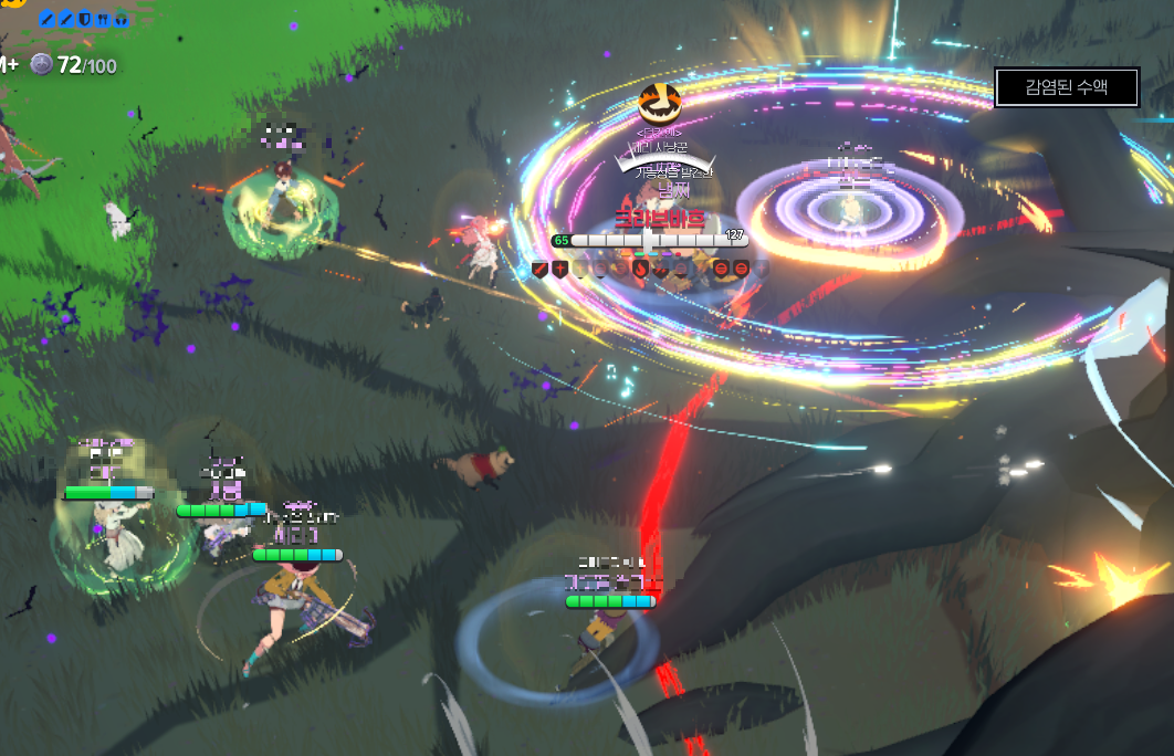 - 공격 대상: 가장 큰 어그로나 대미지를 준 상대방 쪽으로 시전하는 것으로 추측.